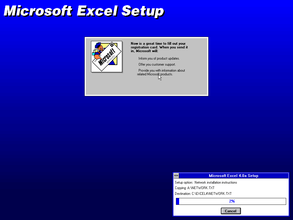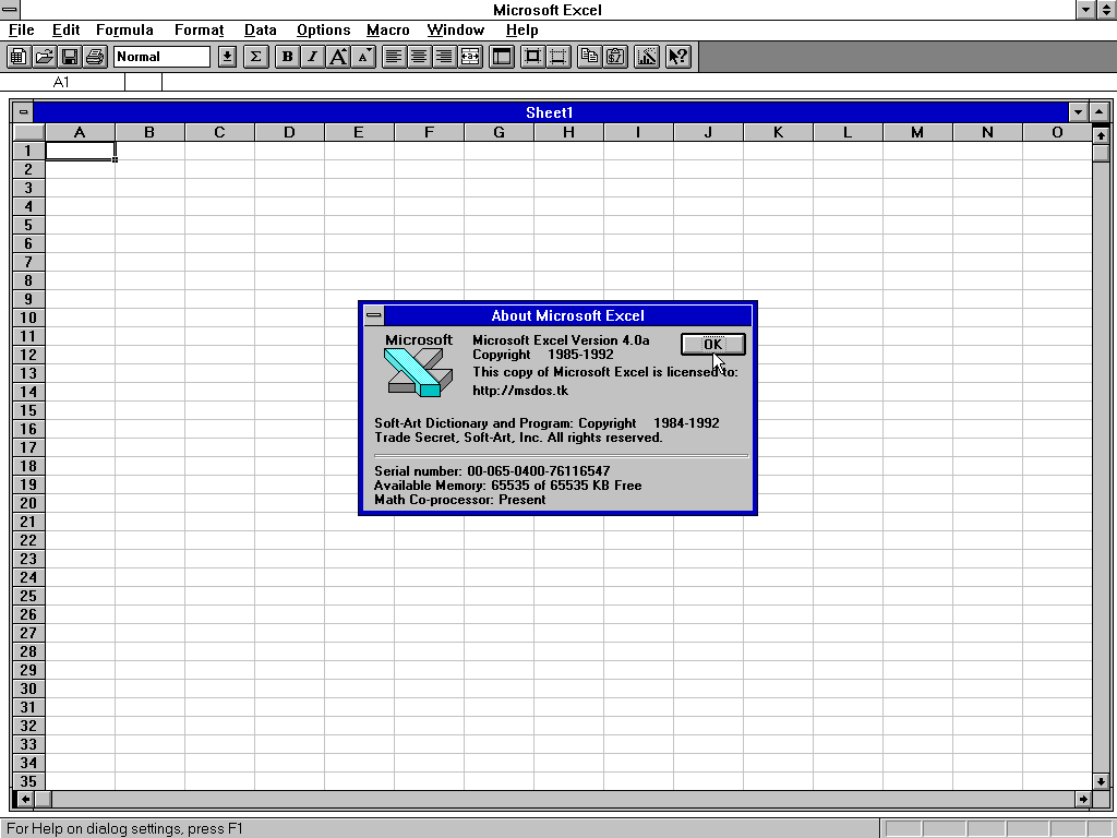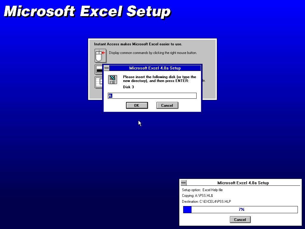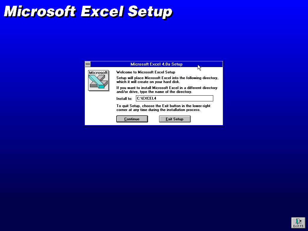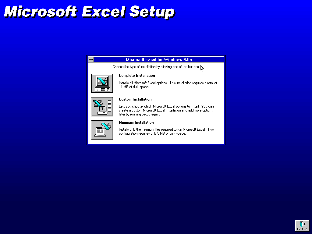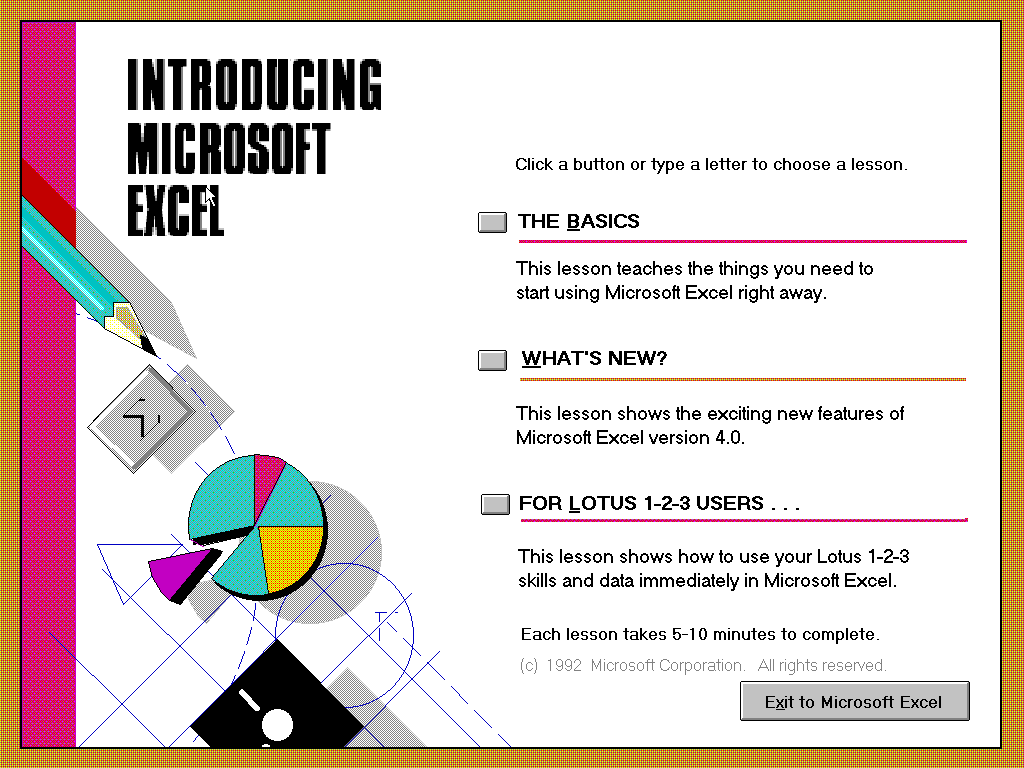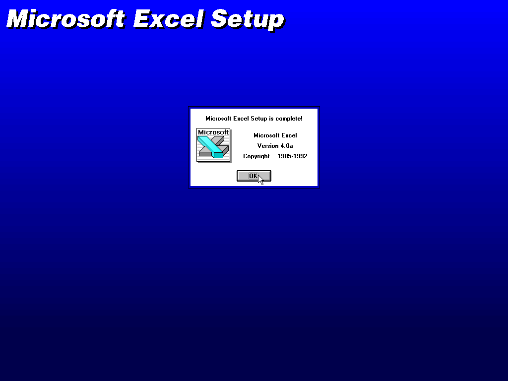 | Excel 4.0发布于1992年。那时还没有Office,Excel只作为一个单独的软件发售。功能还不是很丰富。Excel在Windows 3.1下的最高版本是5.0,包含在Office 4.3(4.2中文版)里。 另见:Office 4.3英文版 Office 4.2中文版