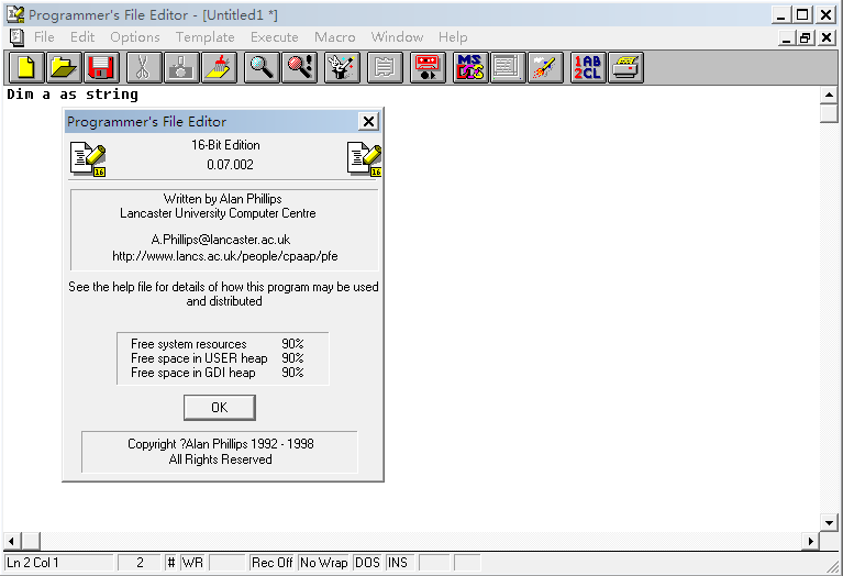 1998年出品的文本编辑器,支持录制宏,基本的文本编辑功能都齐全,界面也还算漂亮。
