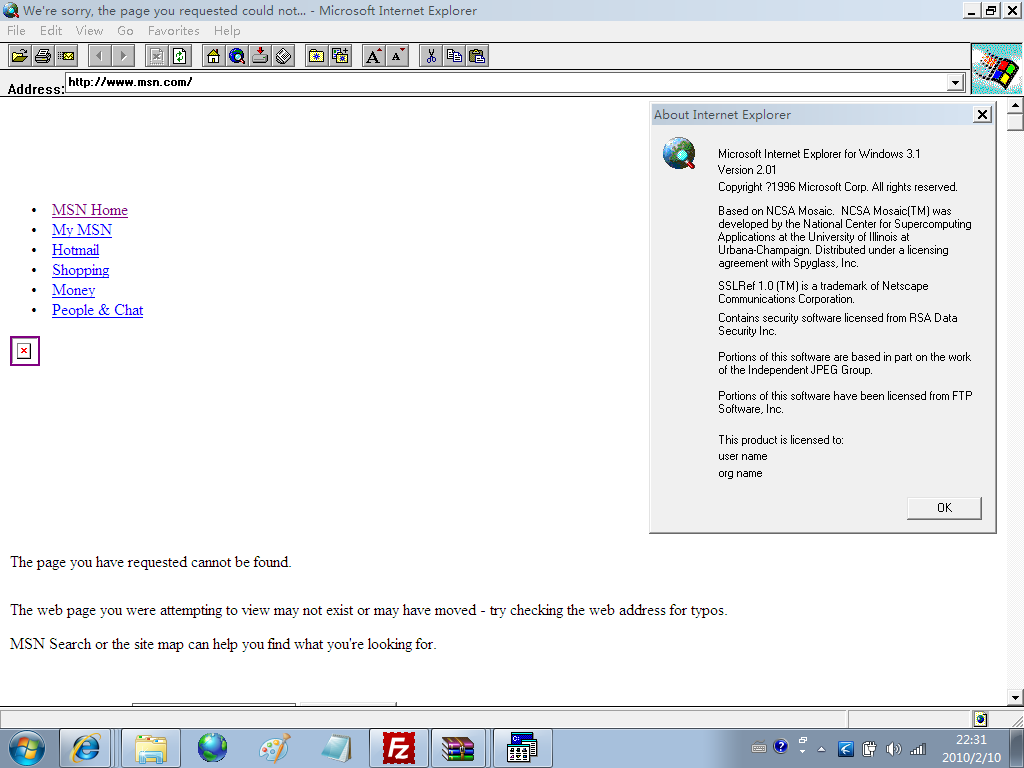 IE的一个早期版本,浏览效果极差,几乎所有的网页都不能正常显示,不过比起它的前身NCSA Mosaic还是有很大改进的。
