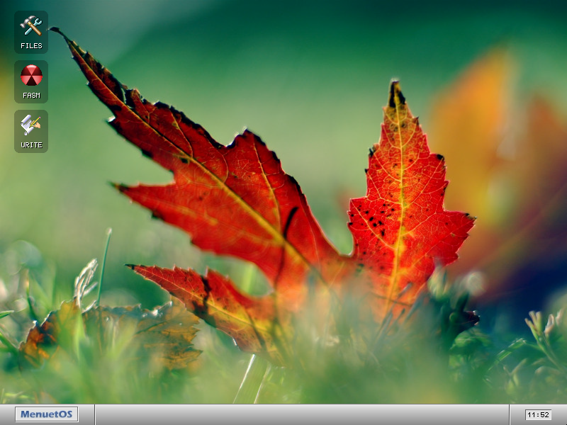 | MenuetOS (MeOS)是一款用汇编语言编写的,小巧而强大的操作系统。提供64-bit版和32-bit版,其中32-bit开源,64-bit闭源免费。相对于1.44MB的体积,它的界面堪称“华丽”,有开始菜单、透明效果、桌面图标,还支持多任务。1.44MB的体积里包含了资源管理器、浏览器、邮件客户端、FTP程序、多款游戏以及文本编辑器。现在已经有一定数量的MenuetOS应用软件,下载地址2是应用软件光盘镜像。 下载地址1是软盘启动镜像。