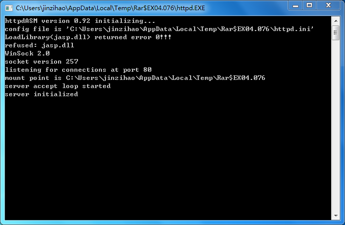 httpdASM可在DOS下运行,需要HX Extender的支持。
